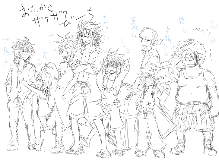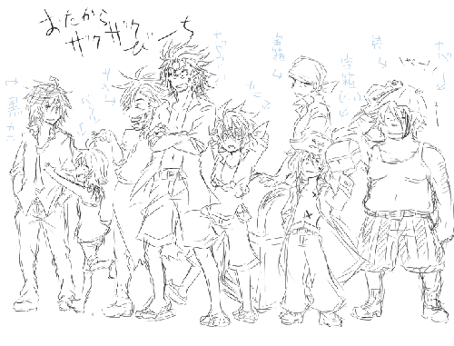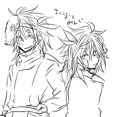 とりあえずこの二人あんまり描いたことないんだよなーって話と服考えなきゃなーって話とイケメン描きにくいんじゃこのやろうガチムチにするぞ!って話でした(はしょりすぎだ